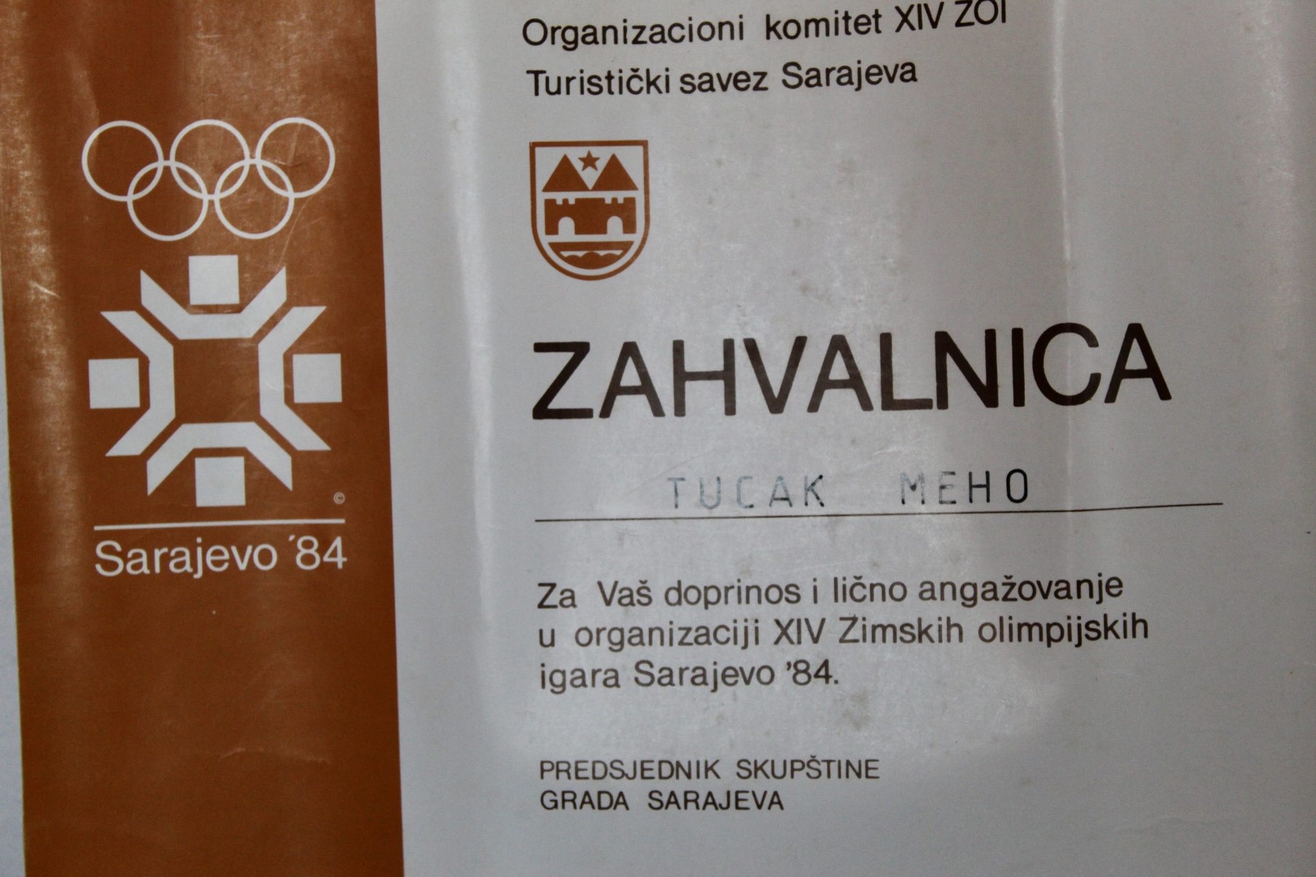 papers I noticed a shiny one with orange details – a notice and a thank you for his contribution to the organization of the 1984 Winter Olympics. I remember watching documentaries about the