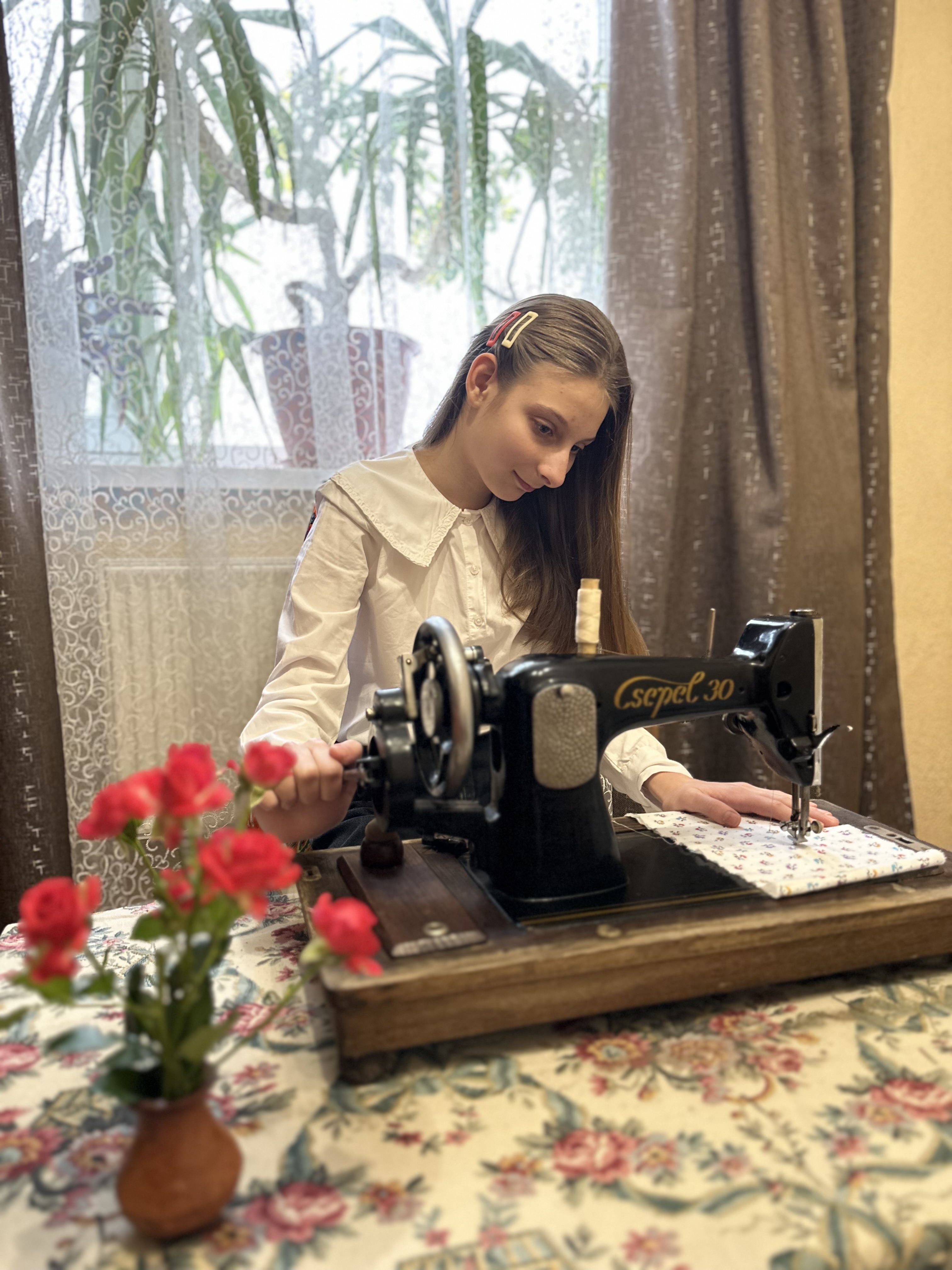 When Grandma Irina talks about it, she smiles. I understand that she remembers not only the dresses, but her mother’s care and love. Every stitch was made with love. When I look at the sewing machine, I imagine my great-grandmother sitting at the table, a lamp shining nearby, and the room quiet. You could only hear the soft clicking of the mechanism and the turning of the handle. Maybe at those moments she was thinking about her family.