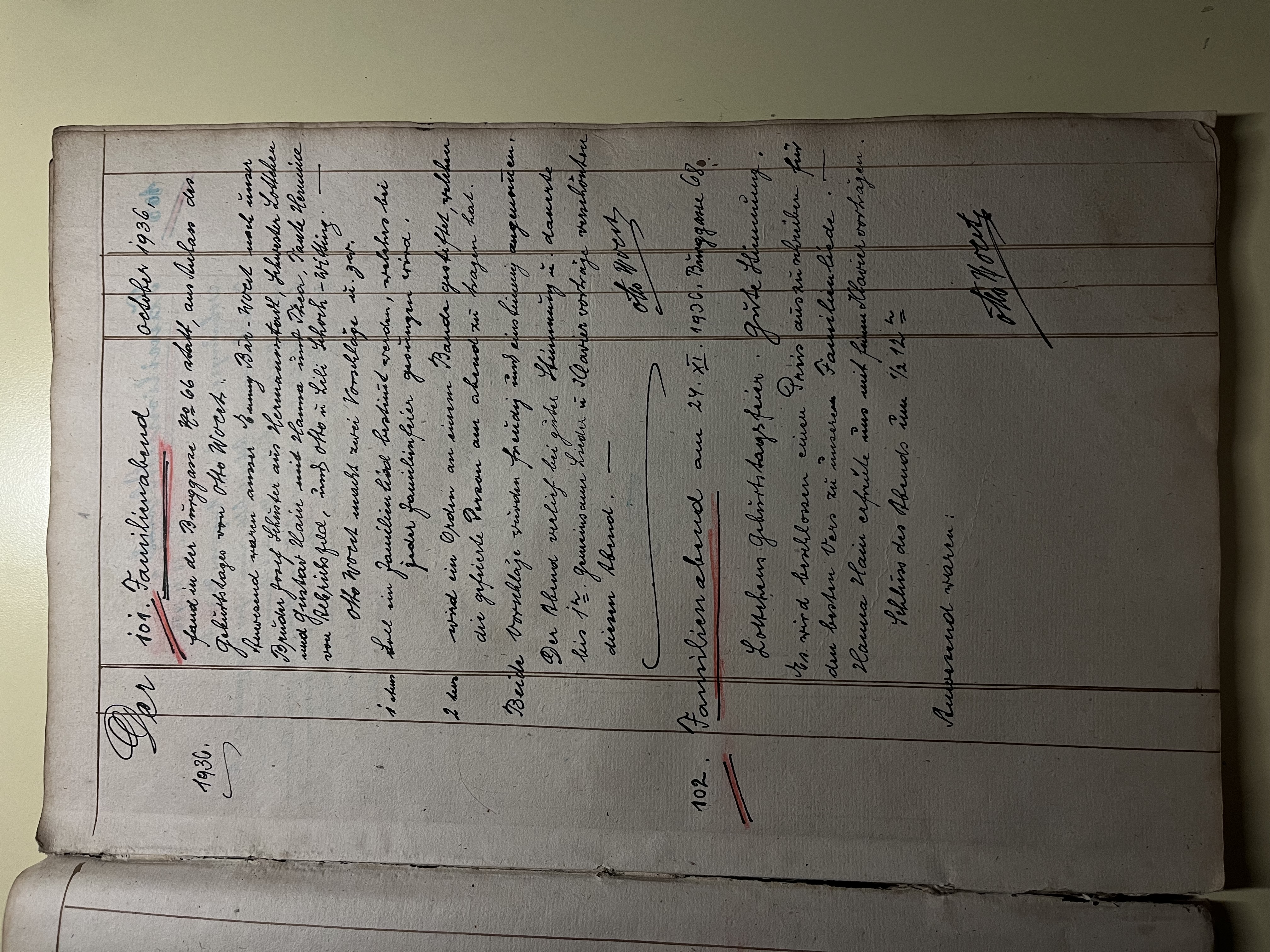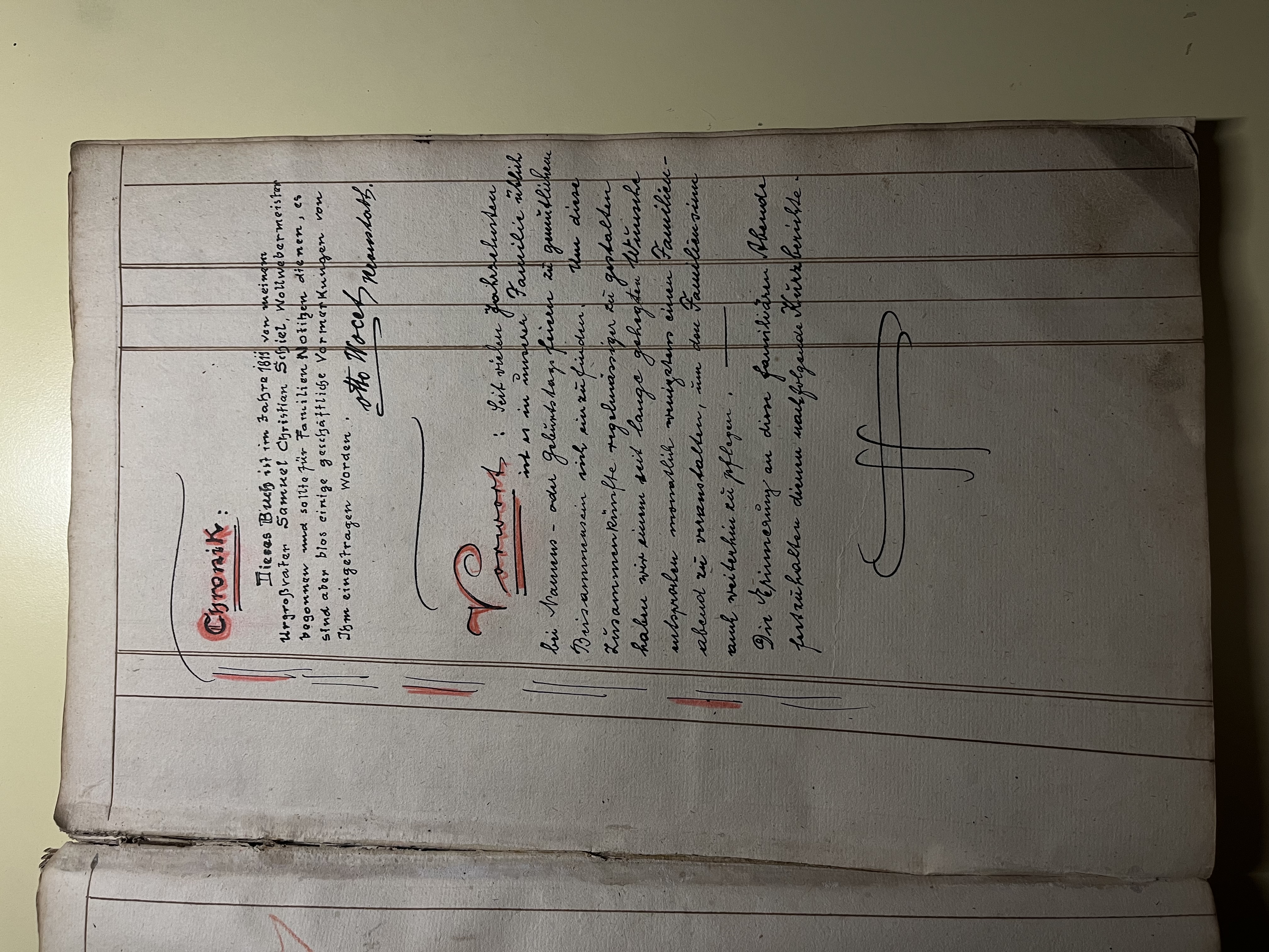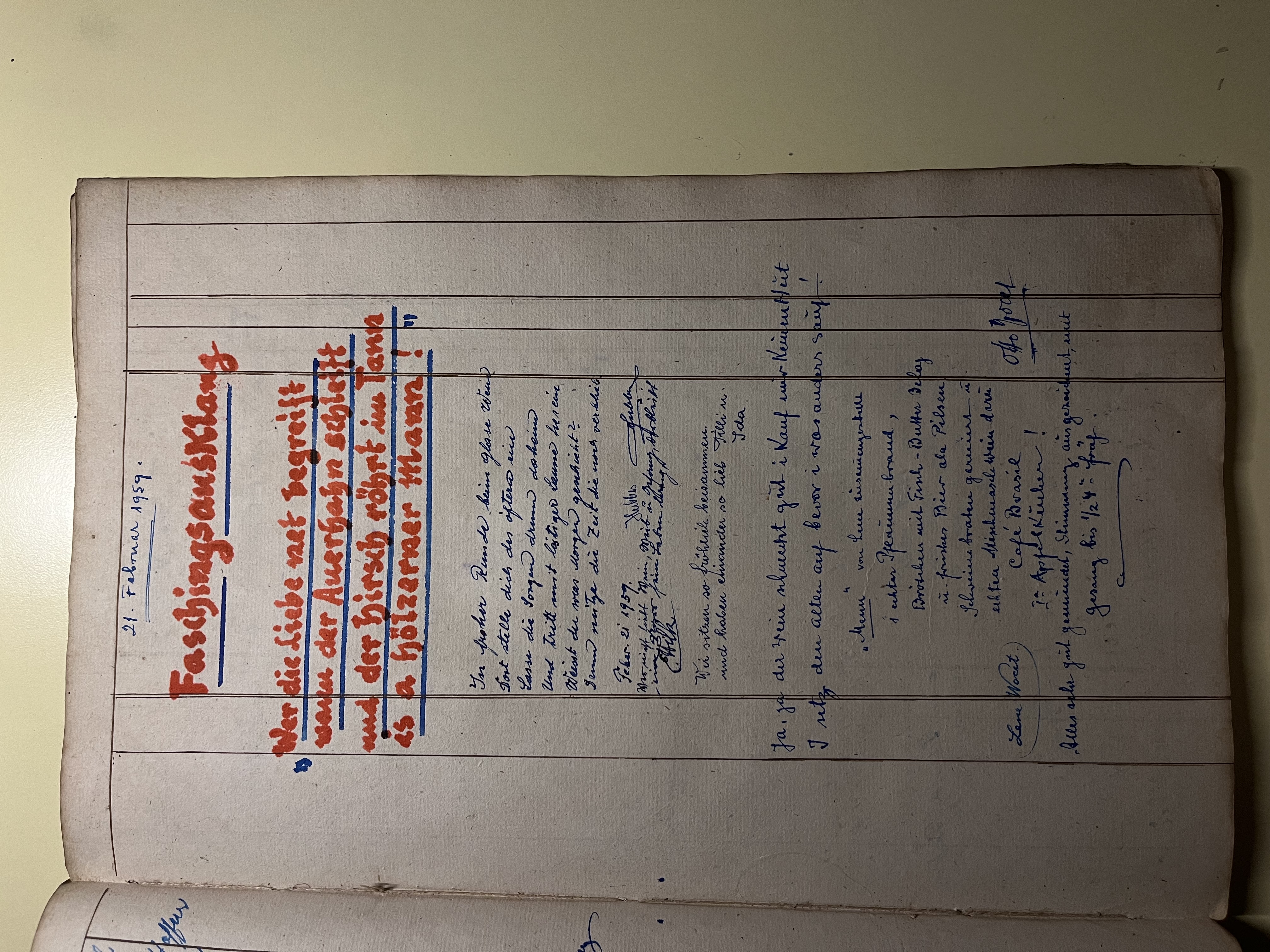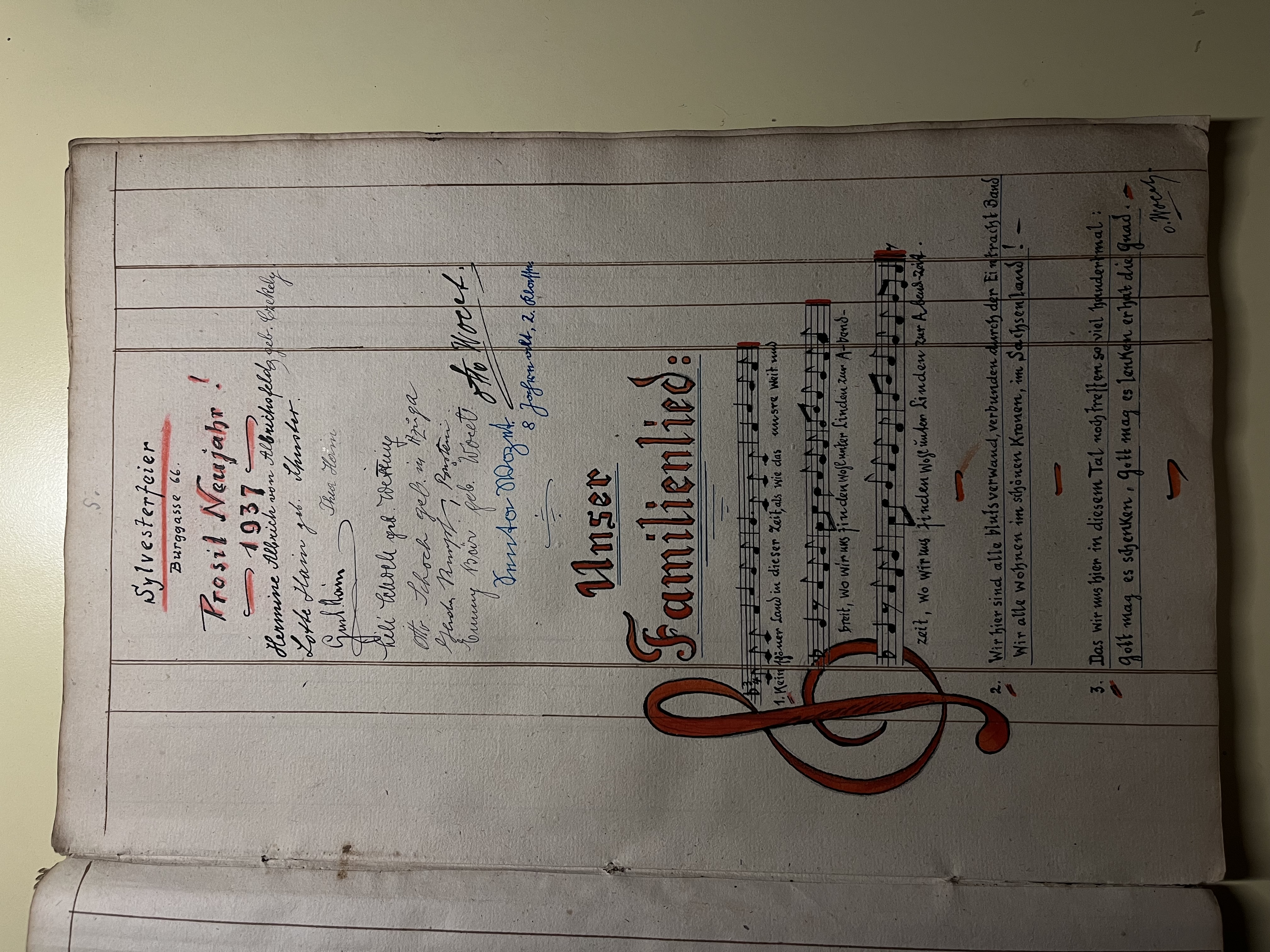 Taking up tradition, my great-grandfather Otto wrote this family book more seriously. He began by describing a family evening in October 1936. Jokes, good humor and music created a warm atmosphere. Many relatives took part in this gathering and the topic of discussion was composing a family song to be sung at every celebration. At the next reunion, a cousin of my great-grandfather’s came up with some suggestions for melodic lines that she played on the piano, and the family members decided to offer a prize to the one who wrote the most beautiful lyrics. Finally, at the beginning of 1937 the family song resounded for the first time in the great-grandfathers' house. The lyrics refer to the unity of the family and the history of the community. The city of Brașov is mentioned, to which the family is proud to belong, along with the so-called "Sachsenland", the region of Transylvania so dear to their ancestors.