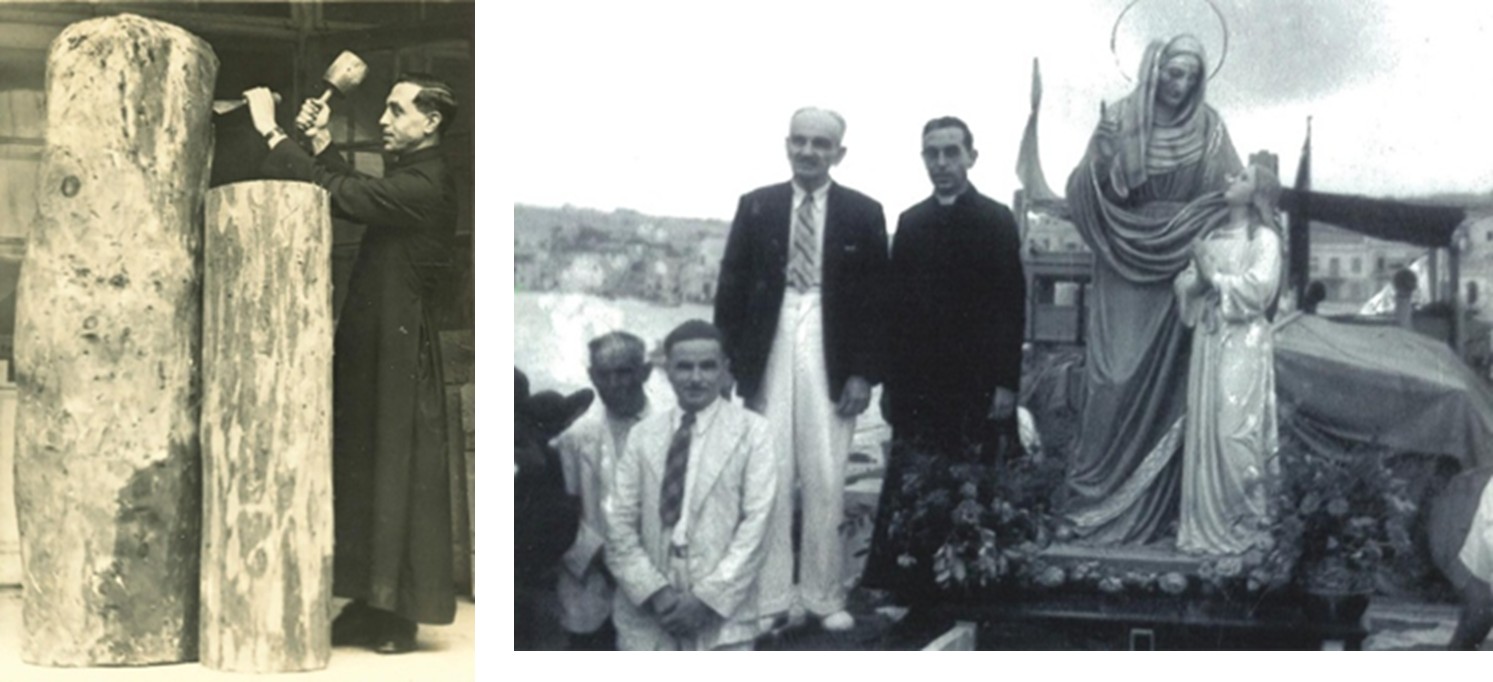 Fr Tarcisio Agius was the uncle of Madre Tarcisia Ruggier (1614-1666). He was ordained a priest in 1637. He served as a teacher and later carried out his ministry in Marsascala, where he worked hard to strengthen both the spiritual and social life of the community. Fr Agius initiated the primary school and Christian Doctrine. As the village expanded, he supported the building of a larger church and helped Marsascala officially become a parish in 1646. He dedicated the parish to St Anne after receiving a providential message telling him to dedicate the church in her name. Later, a statue of St Anne was brought to the parish from Bolzano. The sculptor Stufflesser gave Fr Aguis the honor of chiseling the first groove into the rough wood that would become