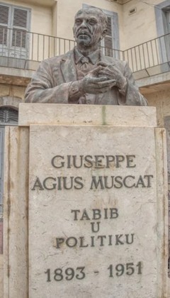 During the Second World War, he remained in Zabbar and offered his home to the Ursuline Sisters after their convent had been hit by bombs. Dr Agius Muscat also served as the doctor of the Zabbar Air Raid Precautions Unit and consulting doctor of various societies in Zabbar. Moreover, he participated in the Sick for Lourdes Association. Dr Agius Muscat was also elected four times in the general elections and appointed as Minister of Health and Social Services in 1650. When he passed away, he had the largest ever funeral held in Zabbar. The street where he had his clinic in Zabbar was named after him. A bust was revealed in his honour and a commemorative plaque was attached to the facade of his house.