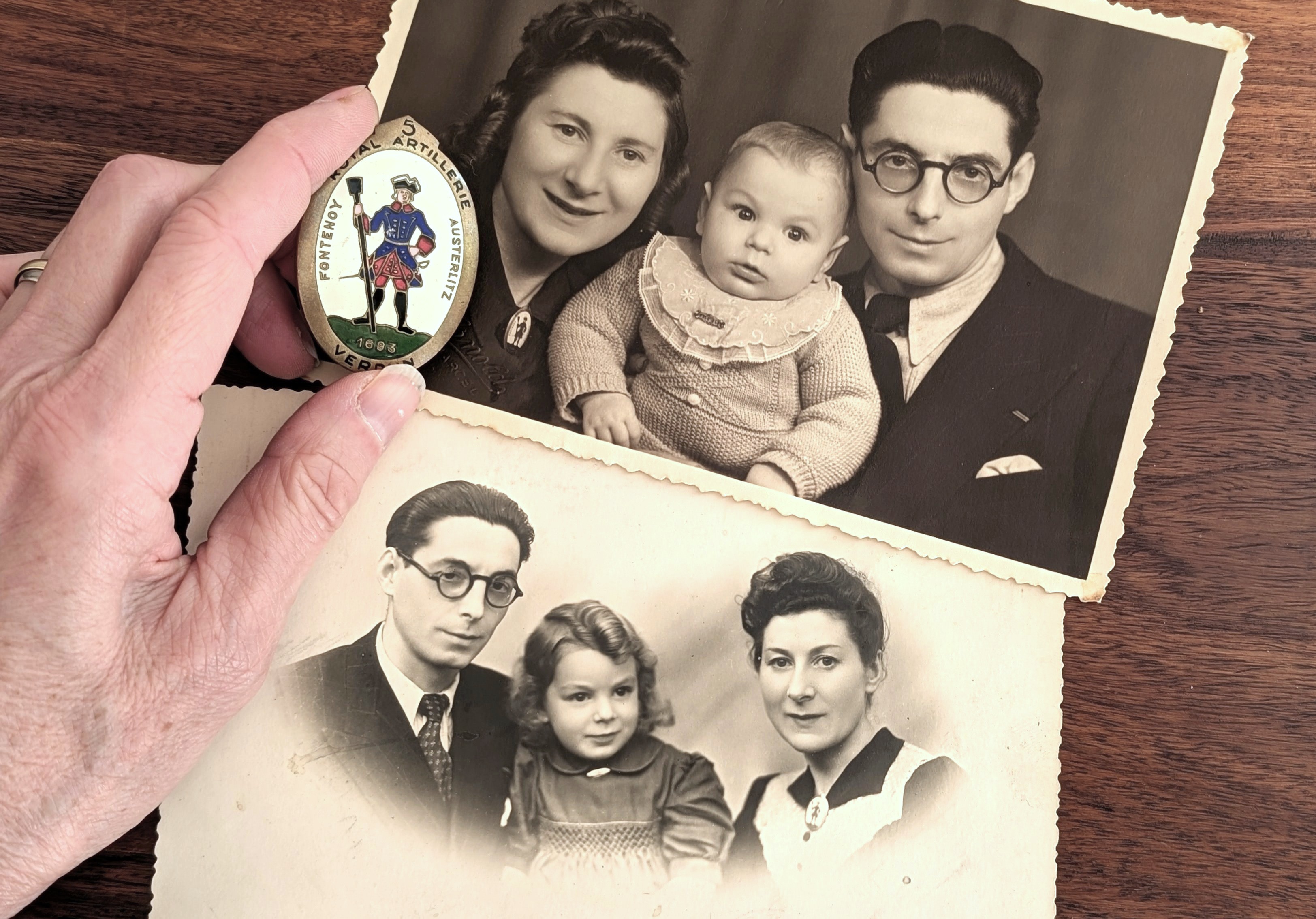 One day in March 2019, I received an email from my mom with a photo attached : an oval metal piece featuring an enamel officer with a sword and a stick, the words “Royal Artillery”, a date 1693, and three locations of battles : Fontenoy Austerlitz Verdun. Her text was very short : “I just realize now what that brooch represents. It has been in my ‘miscellaneous jewels’ box for a long time. It must have come from your grandma’s jewellery box after she passed away”. That email was a complete shock to me, I had never seen that jewel but of course I recognized the image immediately. But to tell the story of that brooch, I must go back in time.